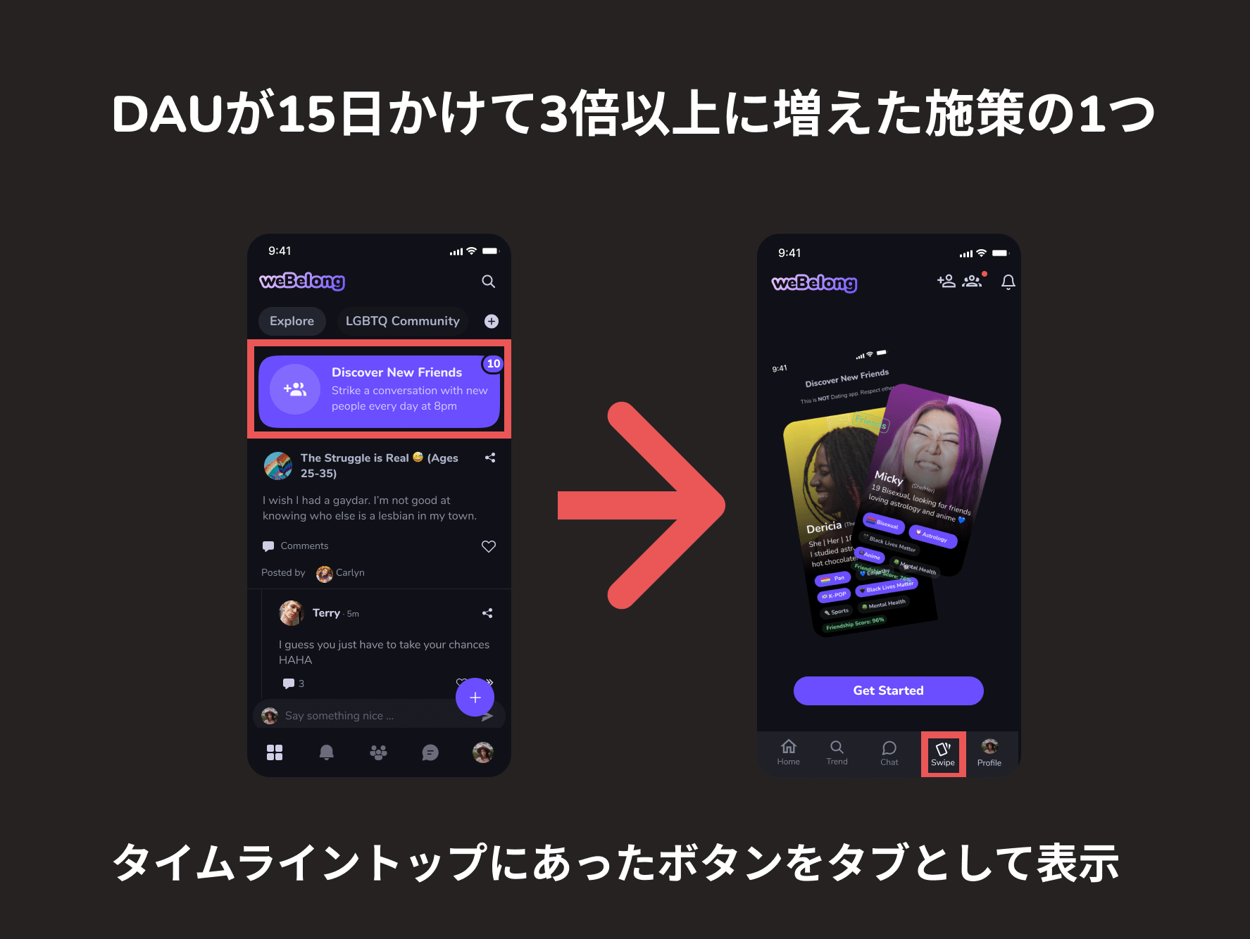 実際DAUが3倍になった施策はこちら。